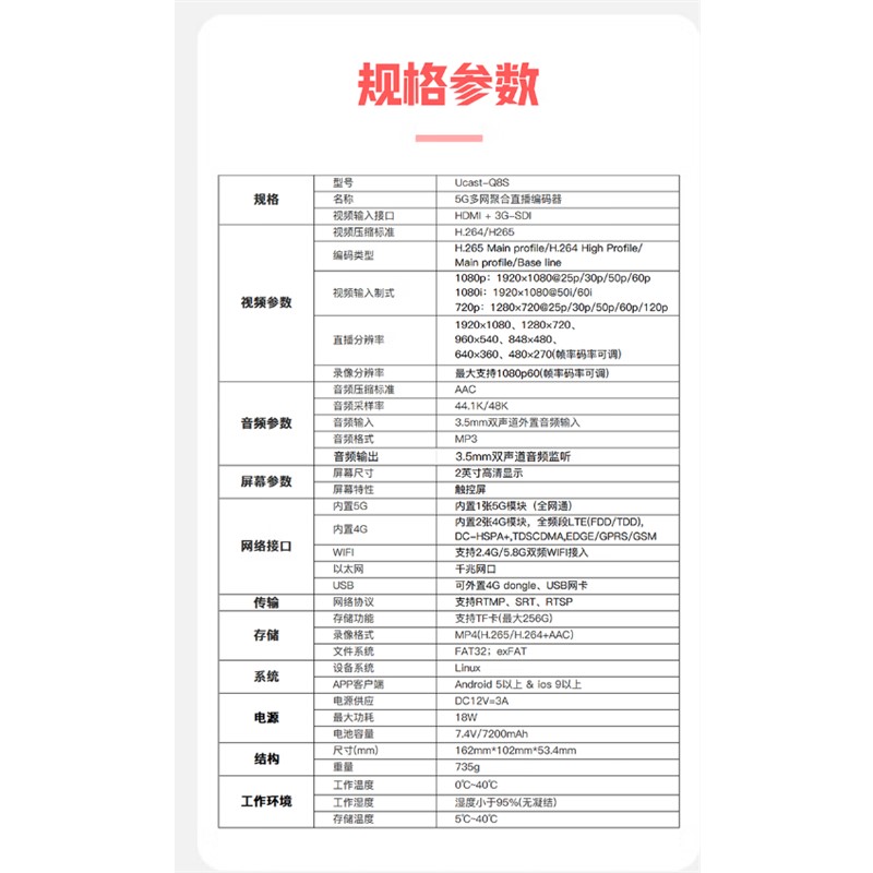 • ucastq8s 5G多網(wǎng)聚合直播編碼器HDMI SDI高清視頻微贊微信多平臺推流設(shè)備 Ucast Q8S