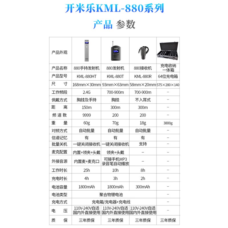 開米樂(KAIMILE)880 耳機/耳麥 1講+100接收+2個64位充電箱 一對多開米樂無線講解器