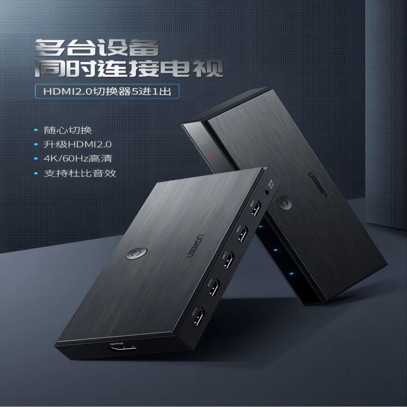 綠聯/UGREEN HDMI切換器 5進1出 4K高清視頻切屏器